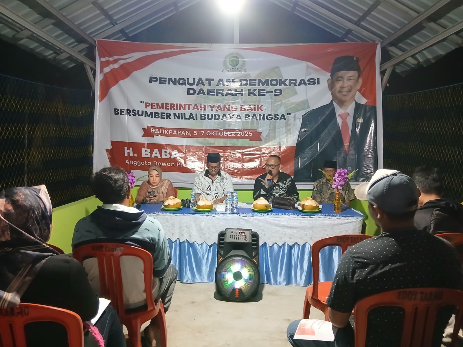 Balikpapan – Anggota DPRD Provinsi Kalimantan Timur, H. Baba, menggelar kegiatan Penguatan Demokrasi Daerah ke-9 Tahun 2025 dengan tema “Pemerintah yang Baik Bersumber Nilai Budaya Bangsa” di RT 45, Kelurahan Teritip, Kecamatan Balikpapan Timur, pada Senin malam (6/10/2025).