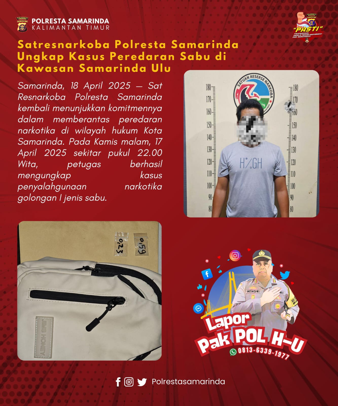 Kasus ini menjadi pengingat bagi masyarakat tentang bahaya peredaran narkoba yang kian mengkhawatirkan. Polresta Samarinda terus meningkatkan upaya pemberantasan narkotika untuk menjaga keamanan dan kesejahteraan warganya. Masyarakat pun dihimbau untuk selalu berperan aktif dalam memberikan informasi yang berguna untuk mendukung penegakan hukum.