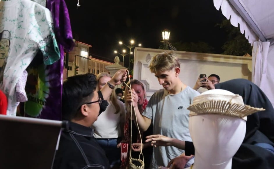 TENGGARONG – Momen menarik terjadi dalam gelaran Eroh Bebaya ke-7 di Titik Nol Kilometer Yogyakarta, Sabtu (28/6/2025), saat seorang wisatawan mancanegara tampak antusias mencoba makanan khas Kutai yang disuguhkan langsung oleh Wakil Bupati Kutai Kartanegara (Kukar), Rendi Solihin.